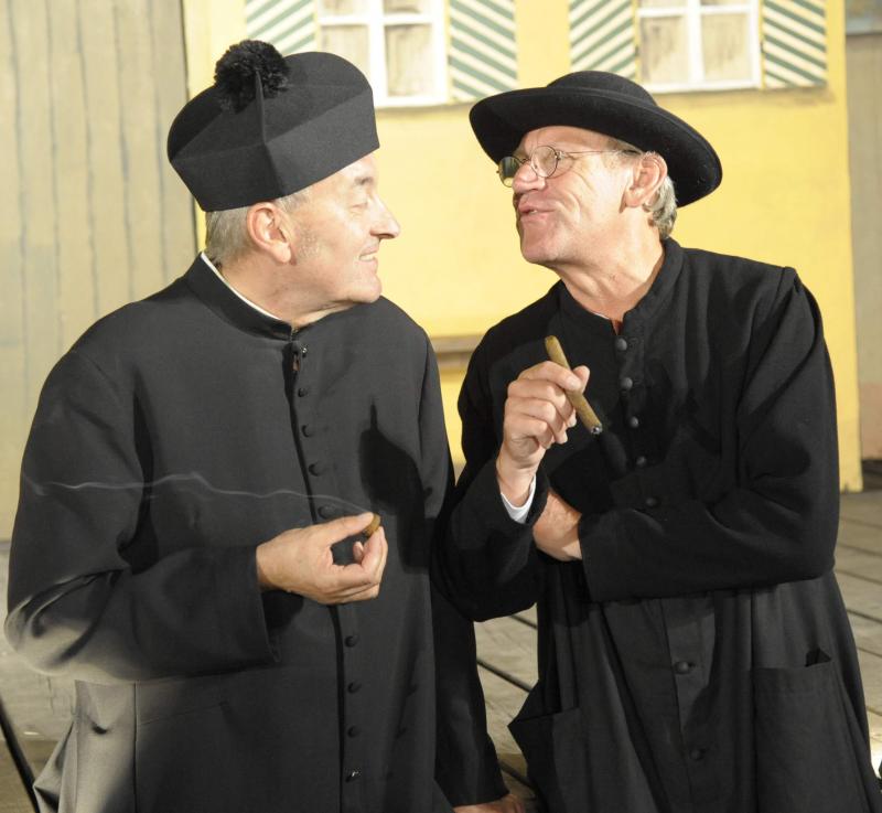 In Dekan Hindringer (Bernhard Kustner, l.) und Pfarrer Bruckner (Erwin Zach, r.) fanden die jungen Leute verständnisvolle Verbündete.