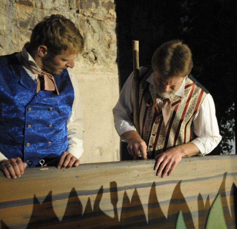 Die Hirschauer versenkten die gestohlene Schnaittenbacher Glocke im Moosweiher. Um sie wieder zu finden, markierte Bürgermeister Hitzinger (r.) die Stelle mit einer Kerbe am Bootsrand.