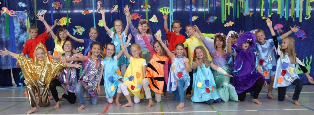 Hauptakteure des Musicals sind die Kinder der Kombiklasse 3/4. Aus ihren Reihen kommen die Darsteller. Sie sorgen mit ihren Flöten und Orffinstrumenten auch für die musikalische Gestaltung. Darin mit eingebunden ist der Grundschulchor. Die Tanzfische kommen aus den Klassen 1 bis 5. Sie alle bereiten sich seit Januar unter den Fittichen von Lehrer Alois Feyrer auf ihre großen Auftritte vor. Auch die Eltern bringen sich aktiv in das Musicalprojekt ein. Sie haben farbenprächtige Kostüme geschneidert und sorgen vor und nach den Aufführungen für die Bewirtung des Publikums.