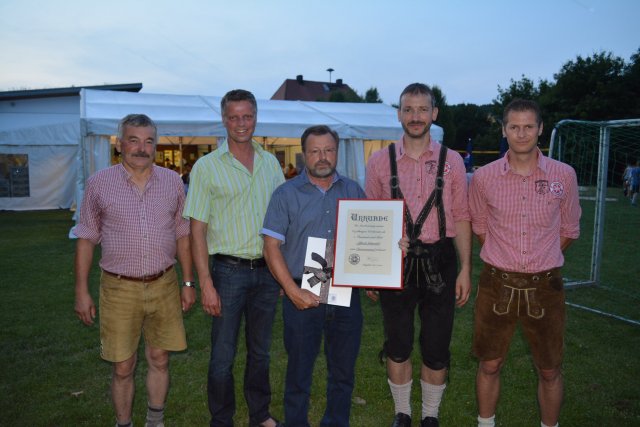 Ehenfeld. Nach sechs Jahren lud die DJK Ehenfeld-Massenricht wieder die Bevökerung zu einem Dorffest im Gemeinschaftshaus ein. Die Vorstandschaft um Stefan Kummer nutzte die Veranstaltung am Samstagabend um verdienten Mitgliedern zu danken. Insgesamt 161 Personen wurde für 25 bzw. 40 Jahre Mitgliedschaft mit einer Urkunde ausgezeichnet. 18 Personen wurden für langjährige Funktionärstätigkeit geehrt. Höhepunkt war die Ernennung von Alfred Schmalzl zum Ehrenvorstand. Über 24 Jahre war er 1. Vorstand und hat dieses Amt immer mit vollem Einsatz ausgefüllt. Auch jetzt ist er noch einer der Aktivposten im Verein und steht der neuen Vorstandschaft mit Rat und Tat zur Seite.