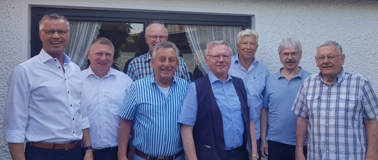 Angesichts seiner herausgehobenen Stellung und seiner Verdienste um die Stadt Hirschau war es selbstverständlich, dass Bürgermeister Hermann Falk die Schar der Gratulanten anführte. Er würdigte die großen Verdienste, die sich der Jubilar während seiner mehr als 40-jährigen Tätigkeit als Rathaus-Bediensteter, davon 19 Jahre als Amtsleiter, für Hirschau und sein Einwohner erworben hat. Er wisse aus eigener Erfahrung um die mitmenschliche, engagierte und fachlich qualifizierte Arbeit Mangelbergers. Falk scherzhaft: „Als ich 1985 meine Ausbildung bei der Stadtverwaltung begonnen habe, habe ich ehrfürchtig zu meinem Amtsleiter Ernst Mangelberger aufgeschaut.“ Nicht weniger lobende Worte für die Arbeit des Geburtstagskindes fanden sein Nachfolger als Amtsleiter Walter Majecki und der CSU-Ehrenortsvorsitzende und Vorsitzende des Förderkreises Altenhilfe Werner Schulz. Dem CSU-Ortsverband sei Mangelberger in den 1980/1990-er Jahren mehr als ein Jahrzehnt als Ortsgeschäftsführer eine große Stütze gewesen, habe 1984 den Bürgermeisterwahlkampf für Helmut Rösch maßgeblich mitgestaltet. Während seiner 24-jährigen Stadtratstätigkeit habe er Mangelberger als hoch kompetenten und umsichtigen Beamten erlebt. Gemeinsam mit Schriftführer und Stadtrat Martin Merkl überbrachte Schulz die Glückwünsche des Förderkreises Altenhilfe. Mangelberger sei Gründungsmitglied und dem Verein von 2005 bis 2022 ein zuverlässiger Schriftführer gewesen. Er gehörte auch zu den elf Gründern des Anglervereins. Für diesen gratulierten Ehrenvorstand Klaus Forster, Kassier Robert Dotzler und Gründungsmitglied Josef Wiesnet. Die Glückwünsche der Kolpingfamilie überbrachte Kassier Erwin Bauer.